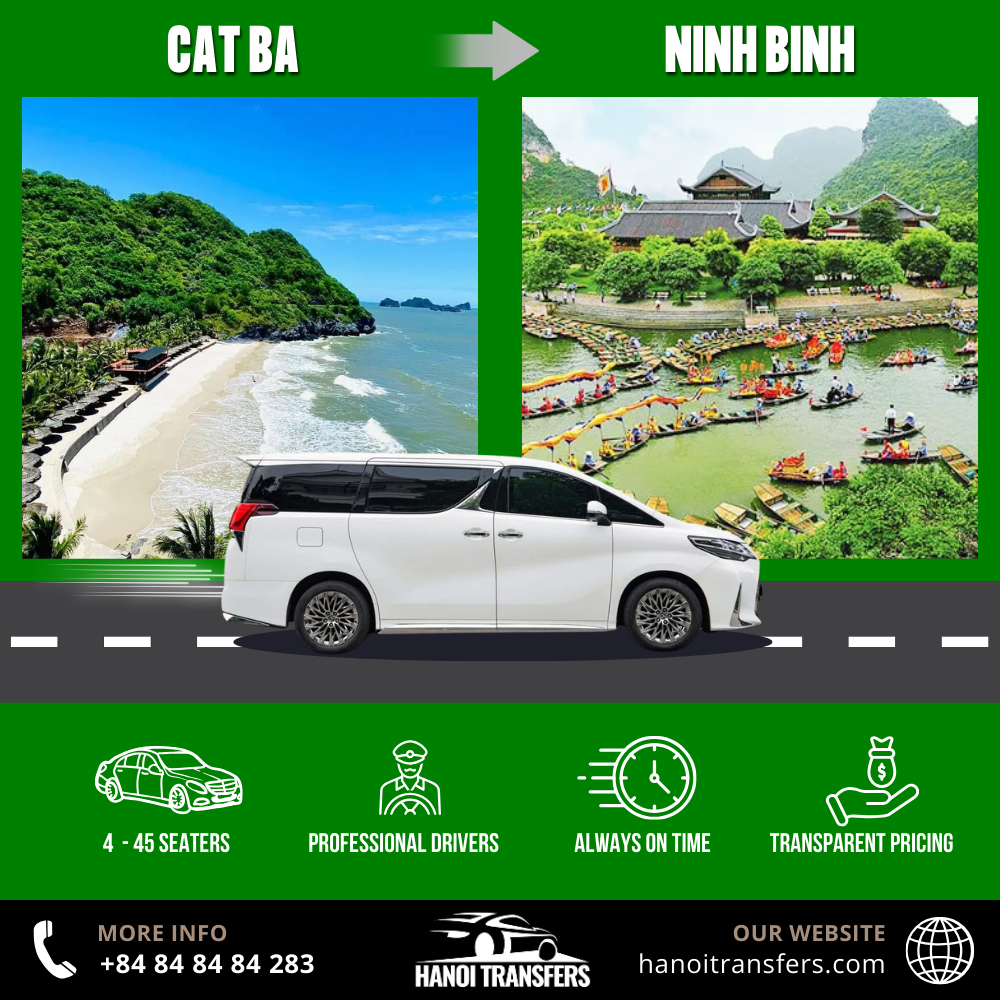 Don’t let transportation worries hold you back from exploring the beauty of Ninh Binh. With Hanoi Transfers, your Cat Ba Island to Ninh Binh journey will be comfortable, safe, and unforgettable. Whether you’re looking for a budget-friendly Cat Ba to Ninh Binh shuttle or a luxurious Cat Ba to Ninh Binh private car, we’ve got you covered.